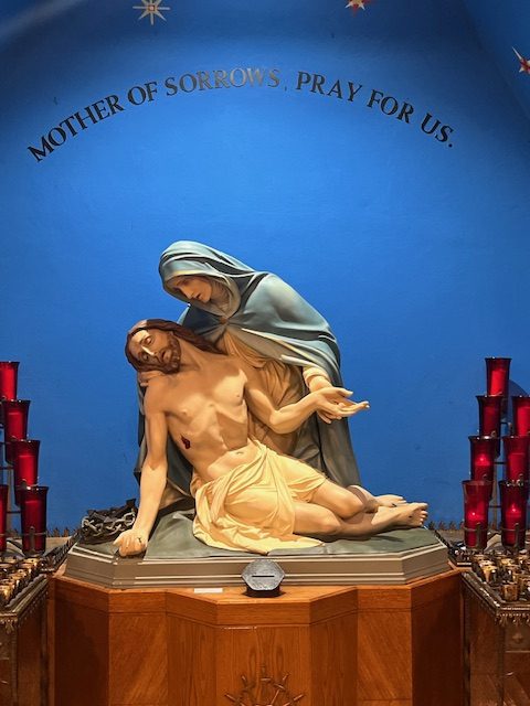 Our work centers on prayer, the spiritual works of mercy and serving our Blessed Mother. Legion members lead the rosary before the 4pm vigil Mass and the 9am Mass on Sunday.