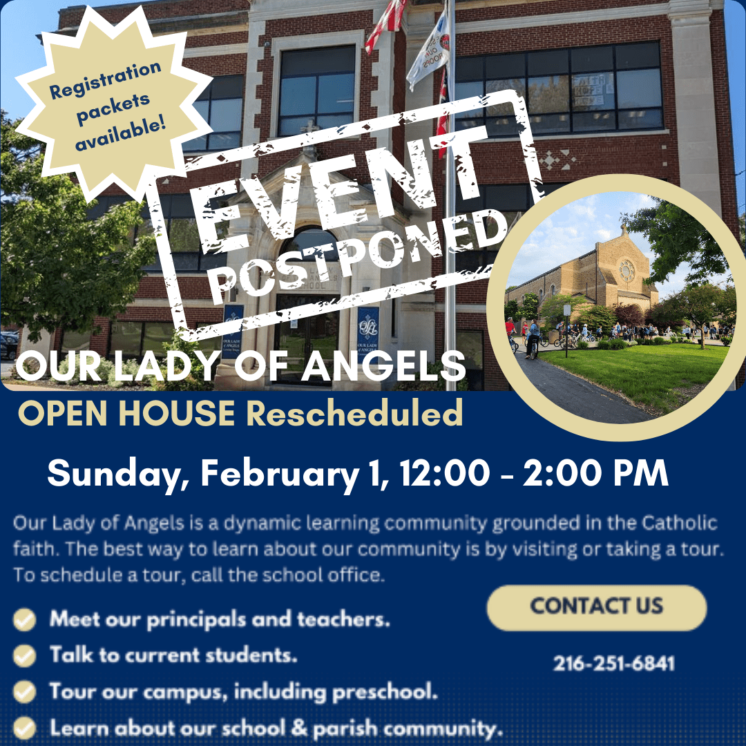 Our Lady of Angels Catholic School educates children in preschool through eighth grade under the authority of the Diocese of Cleveland and accredited by the Ohio Catholic Schools Accrediting Association. Our Lady of Angels School exists to provide an education rooted in the Gospel of Jesus Christ where Catholic doctrine and values, as well as academic excellence prepare each student for a life of faith, service and integrity.